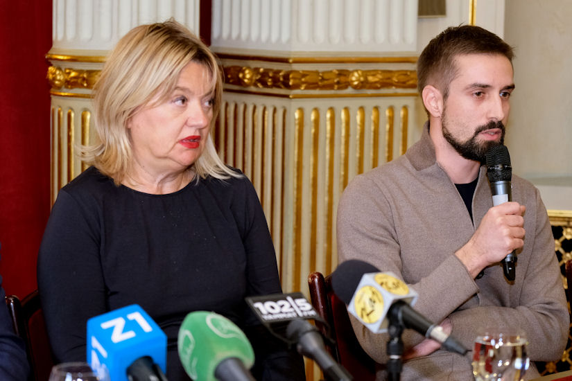 Zagreb, 14.11.2018 - Na konferenciji za novinare u Hrvatskom narodnom kazalištu (HNK) najavljena je izvedba predstave "Orašar" za socijalno najugroženije građane Grada Zagreba. Na konferenciji su govorili zagrebački gradonačelnik Milan Bandić, intendantica HNK-a Dubravka Vrgoč i pročelnica Gradskog ureda za socijalnu zaštitu i osobe s invaliditetom Romana Galić.
