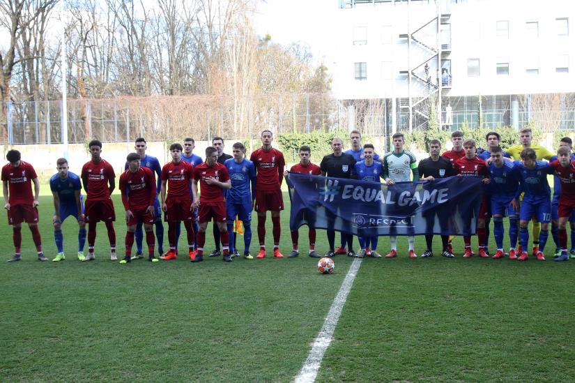 Zagreb, 11.3.2019 - Utakmica osmine finala nogometne UEFA Lige prvaka mladih Dinamo - Liverpool. Na slici obje momčadi.