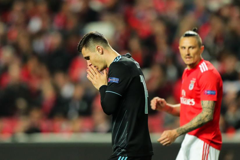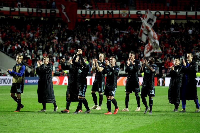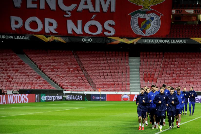 Lisabon, 14.03.2019 - Uzvratna utakmica osmine finala UEFA Europa lige između Benfice i Dinama na stadionu Luz u Lisabonu. Na slici igrači Dinama nakon utakmice pozdravili su hrvatske navijače na tribinama. foto HINA/ Tomislav PAVLEK/ ds