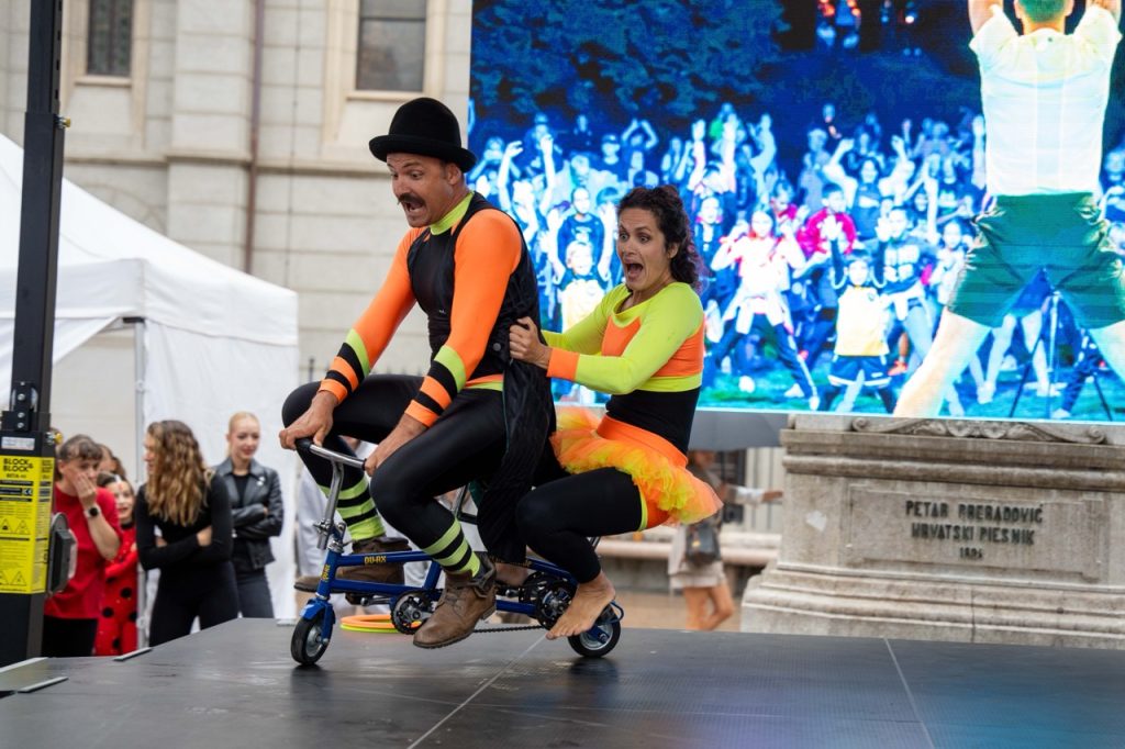 Cvjetni trg pulsirao je snagom, sportom i zajedništvom! Posjetitelji su mogli isprobati inovativnu sportsku tehnologiju – od EMS tajica do egzoskeleta – te sudjelovati u mini turnirima i poligonima, ali i treningu koji je vodio Mario Mlinarić. Najs(p)retniji natjecatelji osvojili su nagrade, dok su svi uživali u zdravim zalogajima, smoothiejima, plesnim i akrobatskim točkama, dinamičnim zumba izvedbama i spektakularnim cirkuskim prezentacijama sa sportskim rekvizitima.