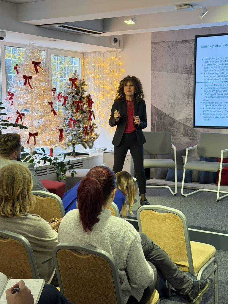Predstavljanje rezultata istraživanja o vršnjačkom nasilju završeno je panel raspravom s tri učenice osnovne i srednje škole, Aurom, Leom i Enom koje su s prisutnima podijelile svoja iskustva i razmišljanja kada govorimo rizicima korištenja interneta.