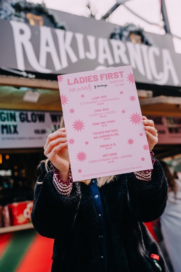 Subote na Fuliranju rezervirane su za Ladies First – program u kojem DJ-ice preuzimaju pult, a plesni podij postaje zona ženske energije, prijateljica, mama i kćeri koje skupa plešu i nazdravljaju životu. Dok DJ-ice vrte funk, disco i pop, Zborkinje i plesna skupina SVE za NJU brinu da koreografije i osmijeha ne nedostaje, a svaka subota nosi snažnu poruku podrške ženama koje se bore s malignim bolestima. U suradnji s Udrugom SVE za NJU, posebnu ulogu igra Rakijarnica sa svojim ružičastim menijem jer prihod od svih pića s tog menija odlazi upravo Udruzi, pretvarajući svaku naručenu čašu u simbol podrške. Na Fuliranju se tako istovremeno pleše, brine, pomaže i slavi život, a adventska scena dobiva dodatnu, važnu dimenziju solidarnosti.