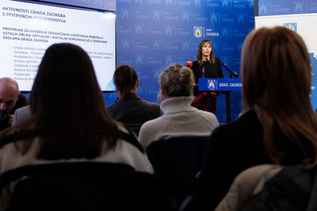 Izv. Prof. dr. sc. Martina Rojnić Kuzman, predsjednica Povjerenstva Grada Zagreba za prevenciju i suzbijanje zlouporabe droga te drugih oblika ovisnosti je predstavila rad Povjerenstva kao i brojne aktivnosti koje Grad Zagreb provodi u području prevencije ovisnosti i zaštite mentalnog zdravlja. U tom kontekstu Grad Zagreb je među prvima reagirao i osnovnim školama izdao preporuku o potpunoj zabrani korištenja mobitela tijekom boravka učenika. Odluka je rezultat rada Povjerenstva za prevenciju ovisnosti i analiza provedenih u zagrebačkim školama, temeljenih na istraživanjima koja jasno pokazuju štetne posljedice prekomjerne upotrebe mobitela – od problema s mentalnim zdravljem, slabije koncentracije i poremećaja sna do narušenih odnosa i rizika od cyberbullyinga.