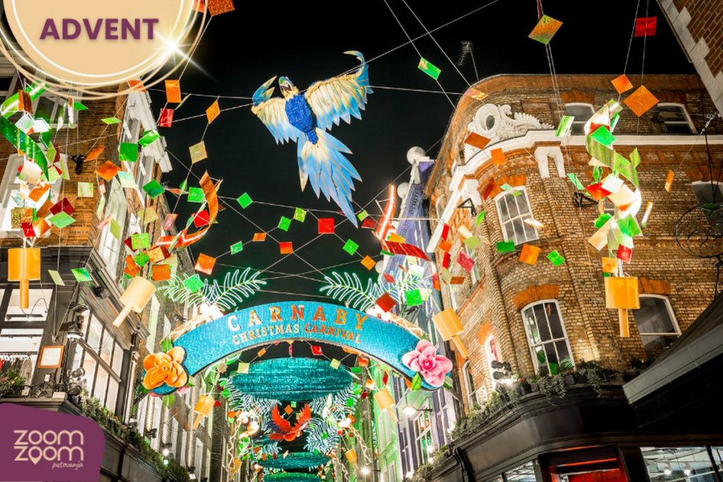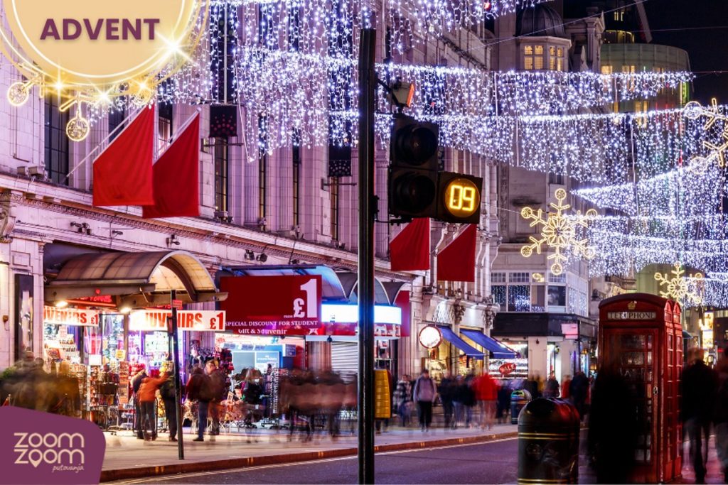Adventska sezona u Londonu službeno započinje početkom studenoga, a jedan od najočekivanijih trenutaka je paljenje lampica na slavnoj Oxford Street. Raskošno osvijetljena ulica, ukrašena spektakularnim dekoracijama, svake godine privlači tisuće posjetitelja koji dolaze osjetiti duh Božića i uživati u bogatim adventskim sadržajima.