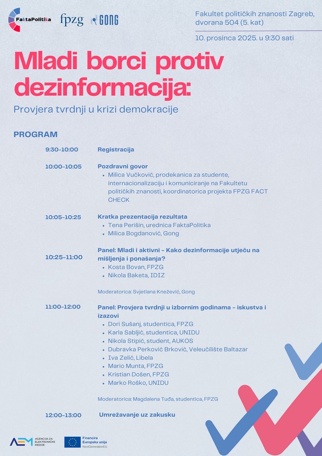 Tagovi: Fakta Politika, Fakultet političkih znanosti, GONG, Mladi borci protiv dezinformacija,